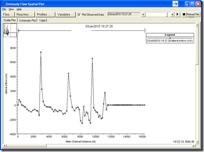 The first two are very useful, and at a computation interval level, can show you things that just won’t show up on the detailed output profile plots. However, the ability to monitor lateral inflow, graphically, and at the computation interval level, is a powerful way to determine when and how much discharge is entering a given reach laterally (via lateral structures from other reaches or storage areas).